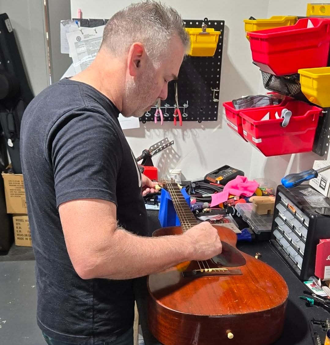 In our new space, Ronnie has more room to work on guitars. He recommends a set up 1-2 times a year depending on where and how often you play. You may need new strings every 3 months. If your strings sound a bit dead when you play, get the sound brightened up with new strings. During colder and dryer months we recommend getting a humidifier for your guitars to help battle fret sprout and wood cracks. Call us to schedule a little TLC time for your guitars.