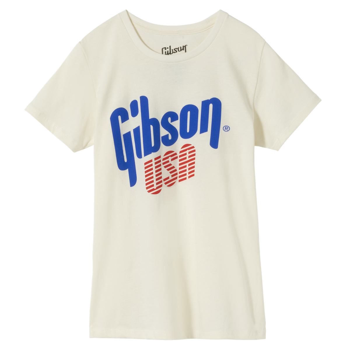 This stylish women's cut tee in Vintage White features the Gibson USA logo from the 90s.